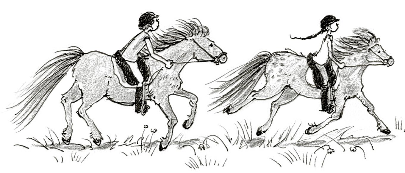 Hančin poník se prohnal kolem obou ostatních. Fany se rozesmála a pobídla Gullivera, takže ten uskočil stranou a také přešel do cvalu.