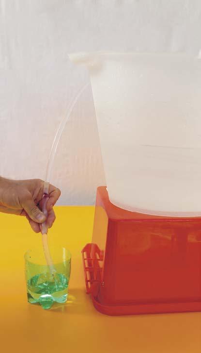 4. Dajte koniec hadičky do spodnej nádoby a sledujte, či voda tečie.