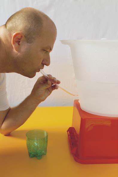 2. Držte slamku zvislo a druhý koniec ponorte do vody.