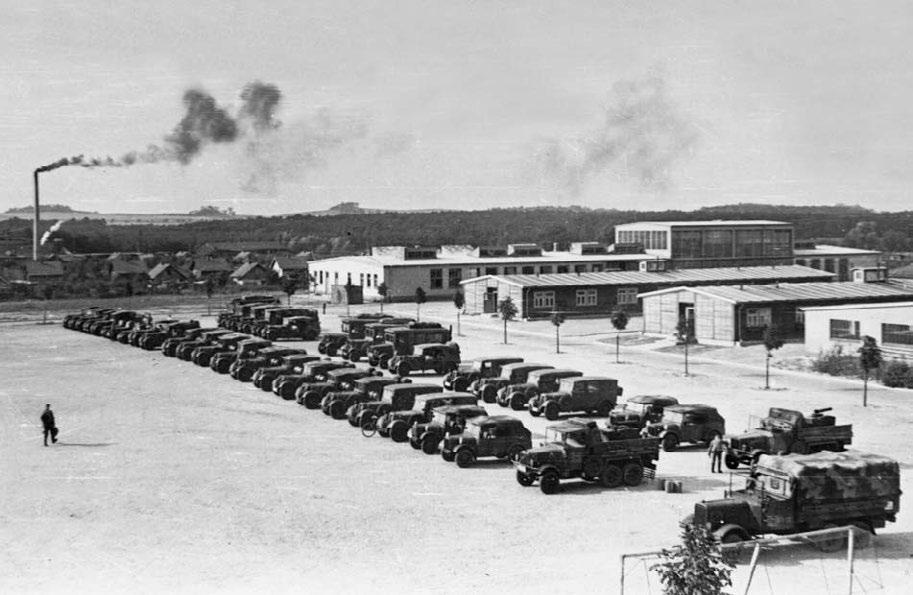 Část vozového parku pěšího pluku 8 ve Frankfurtu nad Odrou připravená k odjezdu na podzimní cvičení – nasazení do Sudet (1938).