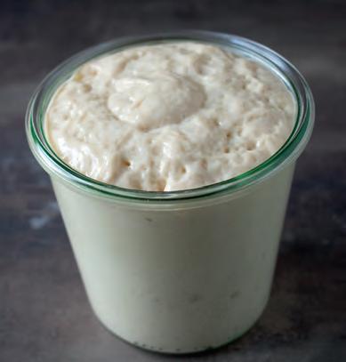• Použít na zadělání některý z prefermentů (např. omládek, str. 23). Alespoň část mouky je dlouho prokynutá v prefermentu, kterým těsto zaděláme.