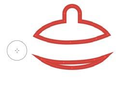 9 V panelu nástrojů na levé straně vyberte nástroj Vytváření tvaru (Shape Builder) ( ). Přesuňte ukazatel na místo, kde vidíte na obrázku červené X. Tažením přes horní tvary je spojte. Dejte si pozor, abyste neprotáhli tah až do spodního tvaru.