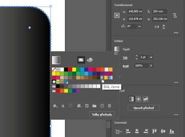 Přechody jsou spojení dvou či více barev, která můžete aplikovat na výplň nebo tah uvnitř kresby. V následujícím kroku aplikujete přechod na tvar pozadí.