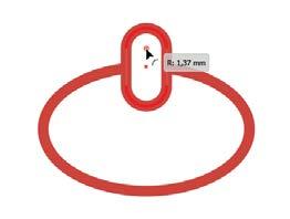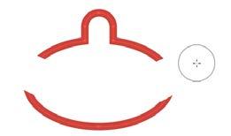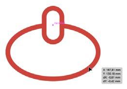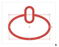 11 V panelu nástrojů na levé straně vyberte nástroj Vytváření tvaru (Shape Builder) ( ). Přesuňte ukazatel zhruba tam, kde vidíte na prostředním obrázku červené X. Stiskněte klávesu Shift a tažením přes oba tvary je spojte. Uvolněte tlačítko myši, a pak i klávesu.