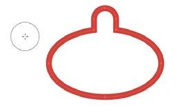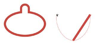 2 Přesuňte ukazatel do prázdné oblasti vedle horní části žaludu, kterou jste právě vytvořili. Klepnutím a uvolněním tlačítka myši začněte kreslit tvar (viz první části následujícího obrázku). Posuňte ukazatel na jiné místo (viz druhá část obrázku).