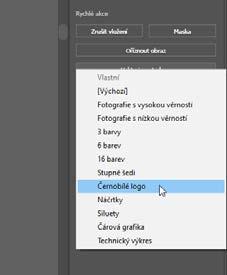 2 Abyste mohli písmo vektorizovat a jeho tvary následně v Illustratoru upravovat, klepněte na záložku panelu Vlastnosti (Properties), abyste si tento panel zobrazili. Poté klepněte v panelu Vlastnosti (Properties) na tlačítko Vektorizovat obraz (Image Trace) a z nabídky vyberte položku Černobílé logo (Black And White Logo).
