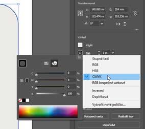 • V panelu, který se objeví, klepněte na tlačítko Barva (Color) ( ). Klepněte na ikonu nabídky panelu ( ) a vyberte CMYK.