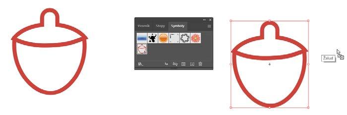 Symbol je opakovaně použitelný grafický objekt uložený v panelu Symboly (Symbols). Symboly jsou užitečné v tom, že vám mohou ošetřit čas a zároveň zmenšit výslednou velikost souboru. Nyní vytvoříte symbol z kresby žaludu.