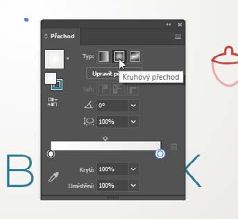 8 Klepnutím na tlačítko Kruhový přechod (Radial Gradient) ( ) v horní části panelu Přechod (Gradient) změňte přechod na kruhový. Poté klepnutím na X v horní části panelu Přechod (Gradient) tento panel zavřete.