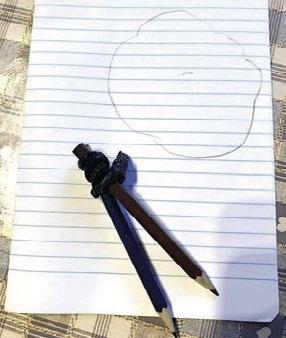 Je to však dítě vynalézavé – takže spojila dvě tužky gumičkou. A kružnice je podle ní víceméně přesná!