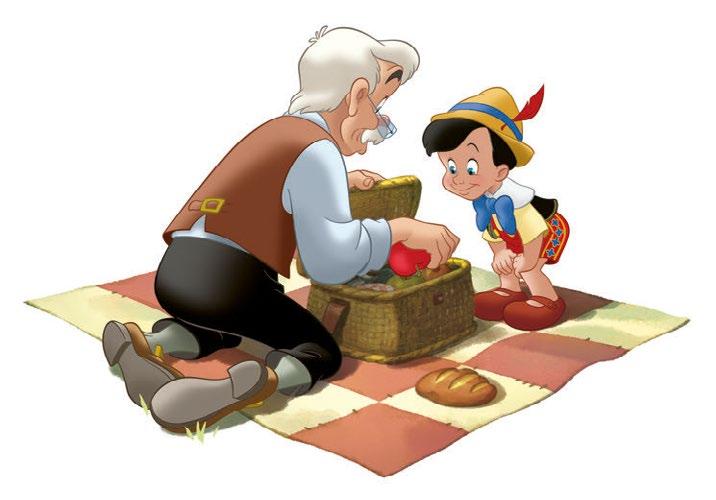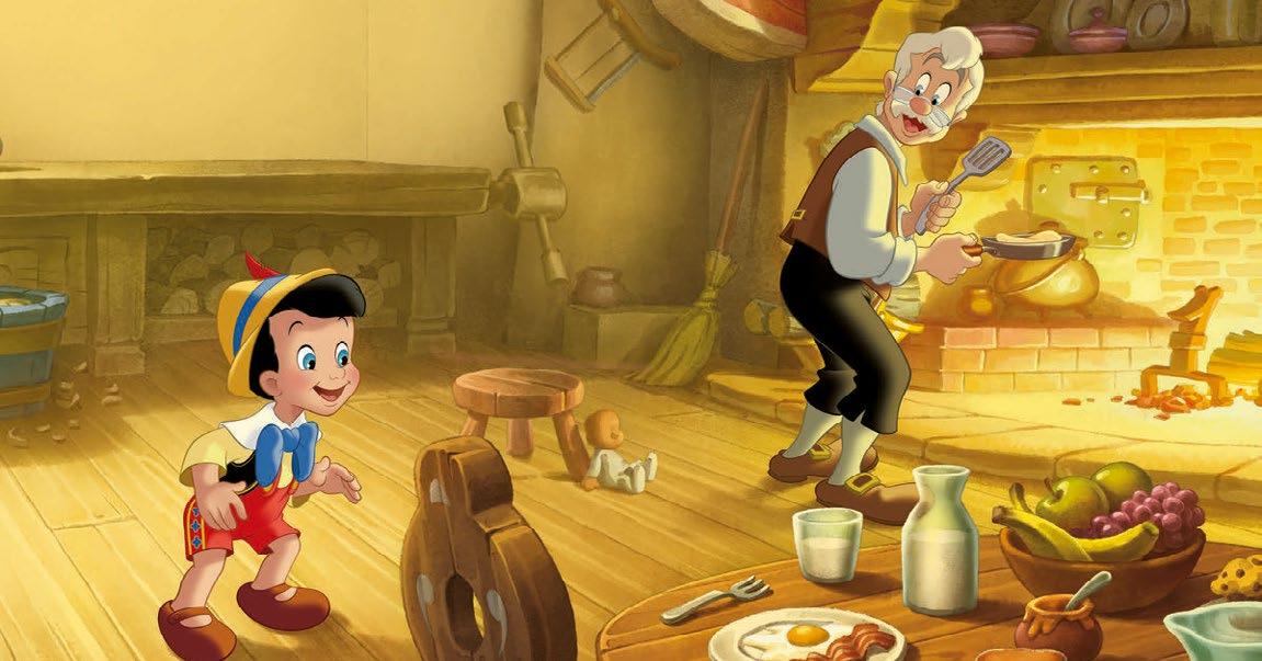 už měl snídani téměř hotovou. Na stole čekala vajíčka, slanina, palačinky, párky, ovesná kaše, pomerančový džus, tousty, mléko amuffiny a… Některé věci Pinocchio ani nedokázal pojmenovat.