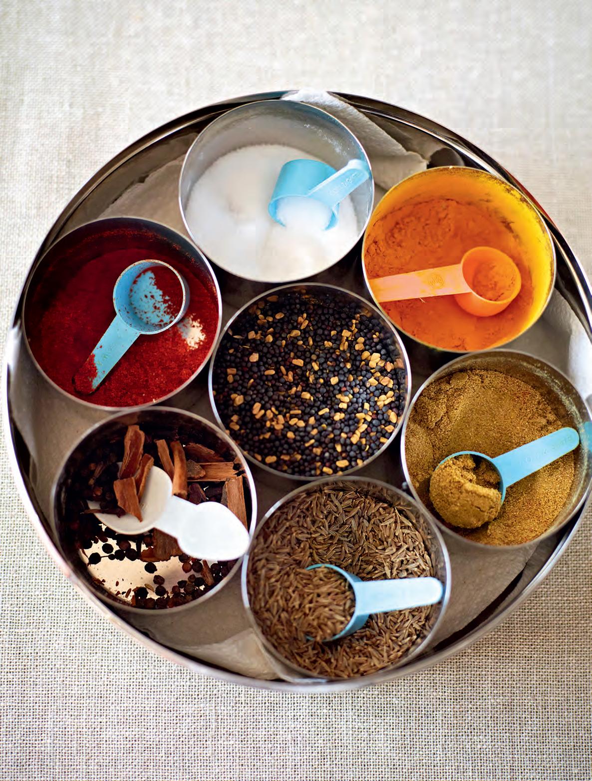 Některá z jídel v této knize vychází ze starobylých rodinných receptů, které dosud nikdy nebyly zaznamenány ani zapsány. V naší rodině se předávaly ze ženy na ženu, mnohdy spolu se snadno zapamatovatelnými anekdotami a přirovnáními, jako „mango by mělo být tvrdé jako kriketový míček“ a těsto „měkké jako ušní lalůček“ nebo „když lžíce ve směsi sama stojí, je hotovo“. Mnohé míry se udávaly v „hrstech“, „miskách“ a konkrétních krabičkách nebo plechovkách, které měla daná kuchařka doma.