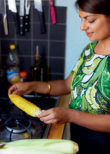Mezi mé nejoblíbenější patří všudypřítomné samosy (viz strana 48), chilli panýr (viz strana 27), s nímž jsem se poprvé setkala u prarodičů v Leicesteru, a kukuřičný klas (viz strana 32), který moje rodina připravovala stejným způsobem, ať už žila v Ugandě, Indii nebo v Lincolnshiru, kde je mimochodem kukuřice stejně vysoká jako já.