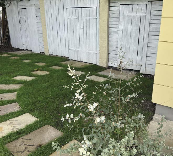 … stačilo jen trochu opravit střechu, všechny dřevěné části obrousit anatřít na bílo, opravit trochu omítku avytvořit od kůlen cestičky zkamenů, které zbyly po rekonstrukci domu. Nově zasetý trávník společně supravenou kůlnou pak znehezkého místa vytvoří vlastně docela pěkné zákoutí, které zahradu již nehyzdí.