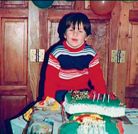 Mladý Lionel Messi sfoukává svíčky z narozeninového dortu.
