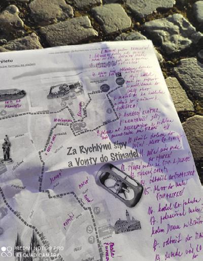 Asi nejdéle jsem s mapou a vontskými knihami chodila po Stínadlech v Praze. Hledala jsem místa, kde prožívaly Rychlé šípy svá dobrodružství, kostel, odkud se zřítil Jan Tleskač, i strom Uctívačů ginga. Vontové mi pátrání moc neusnadnili, neboť tato „organizace“ na místě stále působí a nápisy a vzkazy na stěnách domů se stále mění. Moje popularizace místa se jim pranic nelíbila.