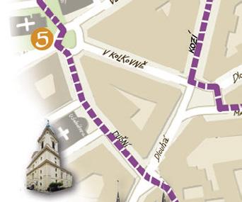 Ulicí Ve Stínadlech, kde si Vontové nechávají vzkazy, se prosmýkněte ke kostelu. Teď už to bude do Řásnovky jen kousek. Je to ulice hned vedle Anežské, kterou už znáte.