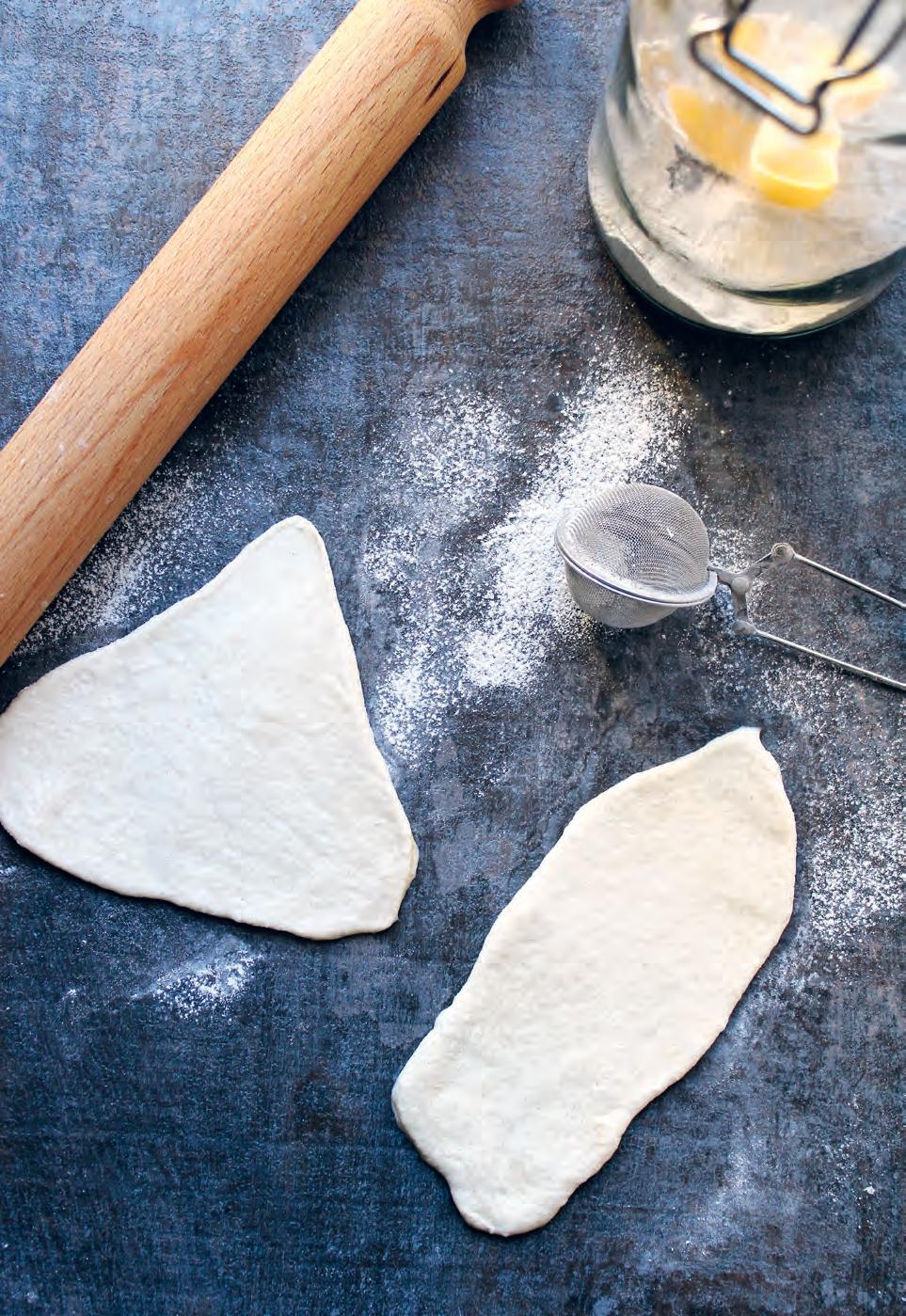 Velké koláče se nevytlačují, ale často rozvalují velkým nebo malým válečkem Buď na vále, nebo rovnou na pečicím papíře