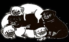 roztomilého kukuče a milé povahy i schopnost vždy a všude vyčenichat žrádlo, naprostou přirozeností. Každý mops bere vážně svou povinnost zabavit svého