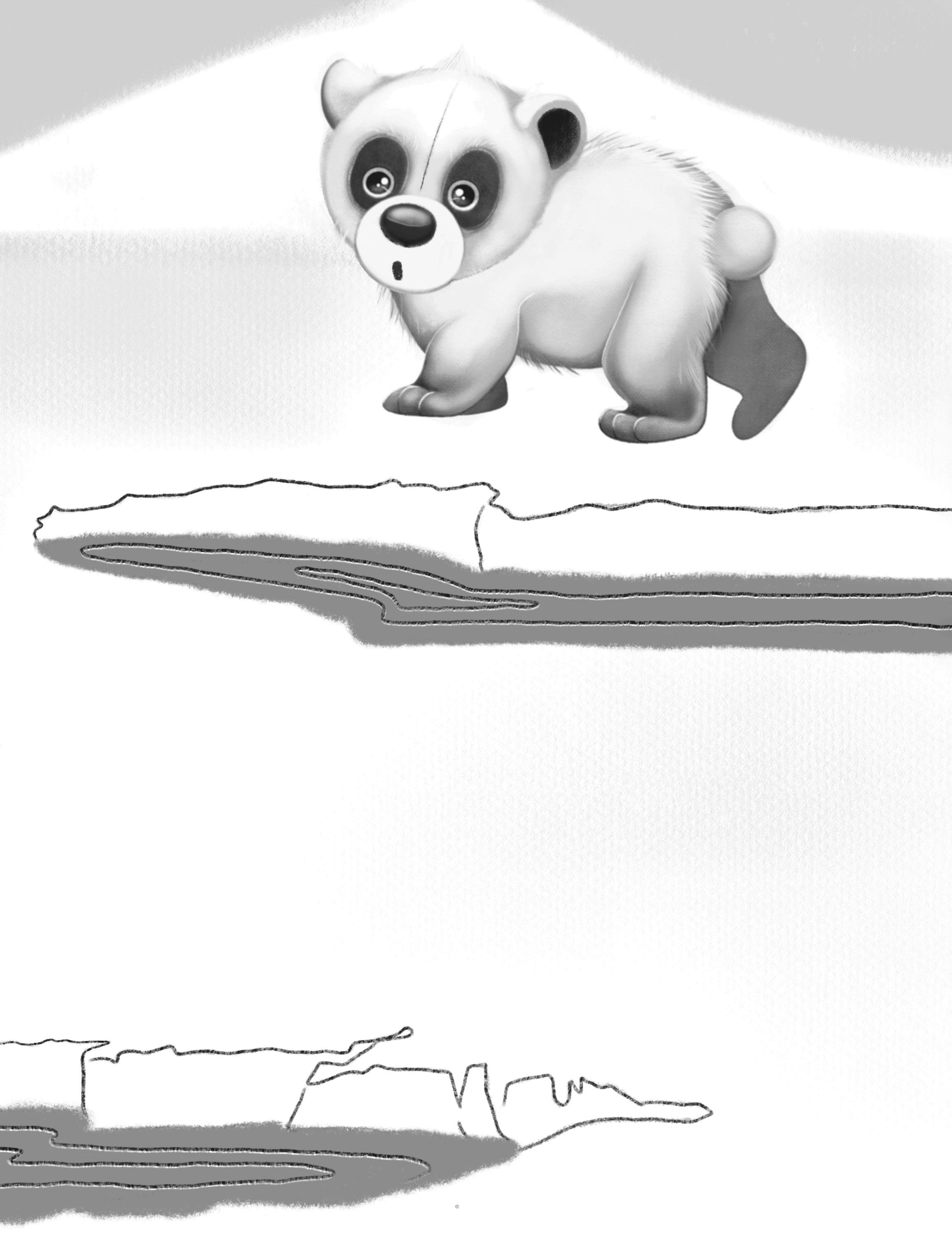 Medvídě se trochu zamyslelo a povídá: „No, to je různé. Medvědi jsou většinou větší a těžší než medvědice. Dospělý medvěd může být až 260 centimetrů dlouhý. Je to délka od čumáčku po ocásek. Medvědí samci mohou vážit až 800 kilo a samička až 400 kilo.“ Honzík naslouchal a přitom se pořádně prohlížel. Velké drápy ho docela děsily, ale zároveň věděl, že se používají k lovu a že k medvědům zkrátka patří. Po chvíli zjistil, že to vlastně na tom ledu ani tak moc neklouže. A byl si trochu jistější. Najednou dostal hlad.