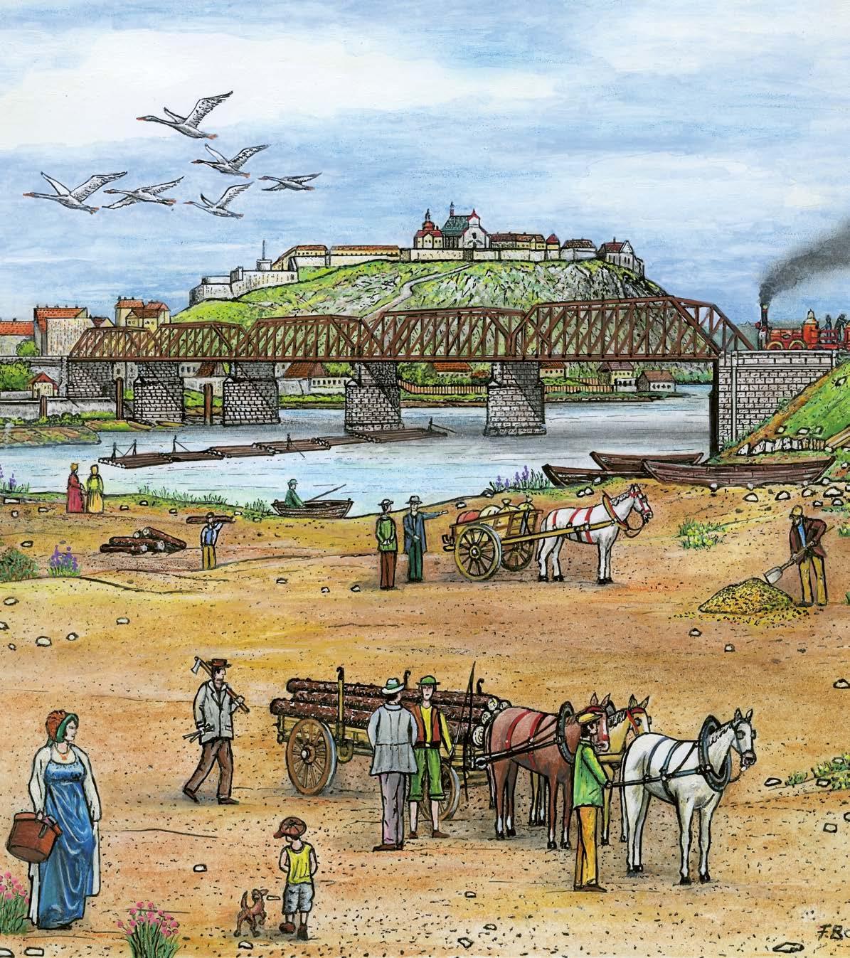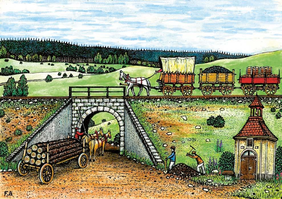 Obr. 6 – Doprava materiálu povozem a koněspřežní železnicí
