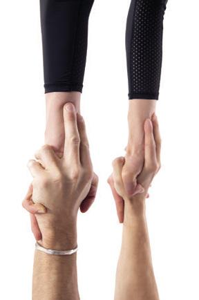Úchop s partnerem tvoří nedílnou součást akro jógy. Pomocí následujících druhů úchopů dokážeme zamezit zraněním a upevníme pouto mezi sebou. V průběhu knihy se k těmto úchopům budeme vracet. Věřím v to, že si je každý z nás osvojí a přirozeně je bude využívat ve všech pozicích a flows. Pamatujte si, že každý z nás má jiný typ těla, a proto vše přizpůsobte tomu, abyste docílili pohodlí a bezpečí. Principem každého uložení je vytvořit rovinu, díky které dokážeme nanést kosti a klouby na sebe, a zajistit tím větší sílu a pevnost.