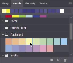 4 Klepnutím na záložku Vzorník/Swatches si zobrazte příslušný panel, pokud již není aktivní, a vyberte libovolnou světlou barvu. (My jsme vybrali Pastelovou žlutou/Pasterl Yellow.)