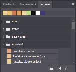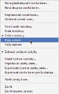 8 Klepněte na tlačítko nabídky ( ) panelu Vzorník/Swatches, otevřete nabídku panelu a zvolte v ní položku Malý seznam/Small List.