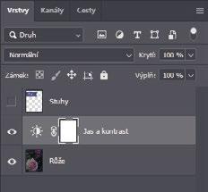 Vrstva úprav umožňuje provést ve snímku úpravy, například změnit jas růže, aniž by tím byly trvale změněny původní pixely. Protože jste použili vrstvu úprav, skryjete-li ji nebo smažete-li ji, můžete úpravu kdykoli deaktivovat. Vrstvu úprav lze také kdykoli upravit. Vrstvy úprav budete používat i v několika dalších kapitolách v této knize. Práce s vrstvami je jedním ze základních a nejmocnějších rysů Photoshopu. Ve Photoshopu najdete spoustu různých vrstev, některé z nich obsahují obrázky, text nebo jednolité barvy, jiné pouze ovlivňují vrstvy nacházející se pod nimi. Více o vrstvách se naučíte v Lekci 4, „Základy práce s vrstvami“, a během dalších kapitol v této knize.