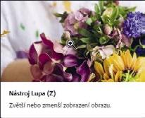 Když jste v předchozím cvičení vybrali nástroj Lupa/Zoom, všimli jste si, že na pruhu voleb jsou k dispozici některé volby, které umožňují změnit aktuální zobrazení v okně dokumentu. Nyní se o nastavení vlastností nástroje dozvíte více s využitím kontextové nabídky, pruhu voleb, panelů a nabídek panelu. Všechny tyto metody využijete, když budete s nástroji pracovat na vytvoření druhé stuhy k narozeninovému přání.