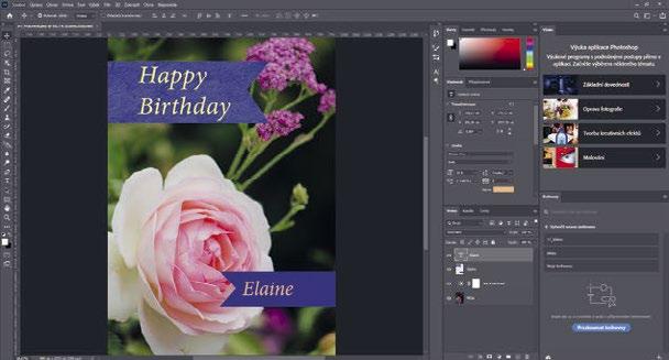 Právě jste dokončili svůj první úkol ve Photoshopu. Váš obrázek je nyní světlejší a živější a připravený pro výrobu narozeninového přání.