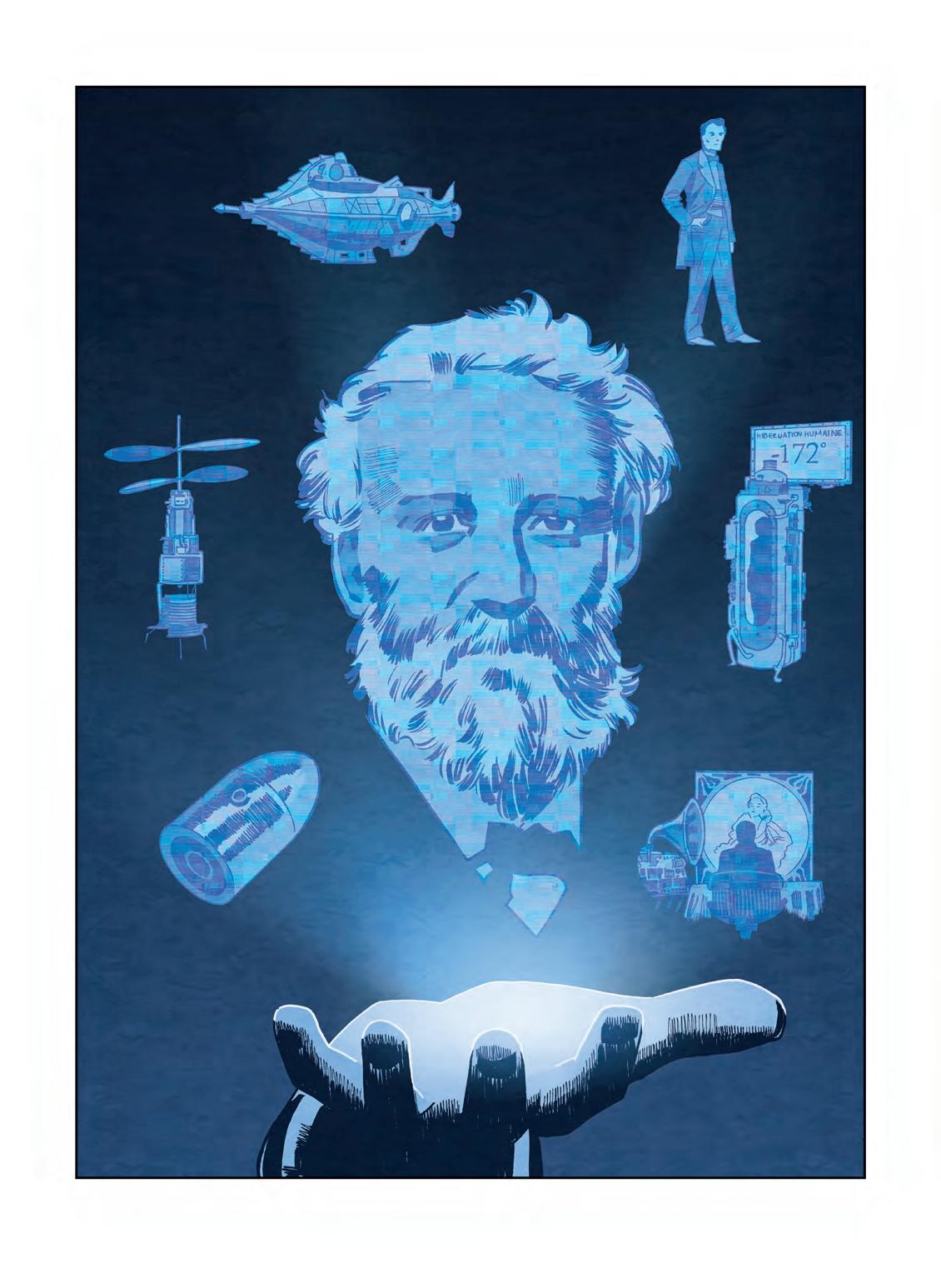 MEZI LETY 1865 A 1870 PUBLIKOVAL JULES VERNE DVA ZE SVÝCH NEJZNÁMĚJŠÍCH ROMÁNŮ, ZE ZEMĚ NA MĚSÍC A CESTA KOLEM MĚSÍCE ●, V NICHŽ PŘIVEDL NA SVĚT PRO TU DOBU NEZVYKLÉ, VLASTNĚ ZCELA NOVÉ HRDINY: VĚDECKÉ DOBRODRUHY. OBA ROMÁNY MĚLY VE SVÉ DOBĚ VELKÝ DOPAD, OVLIVNILY H. G. WELLSE I REŽISÉRA GEORGESE MÉLIÈSE… A MOŽNÁ DOKONCE I AMERICKÉ DOBÝVÁNÍ VESMÍRU, DÍKY NĚMUŽ ČLOVĚK VKROČIL NA MĚSÍC V ROCE 1969, TEDY O NĚJAKÝCH STO LET POZDĚJI.