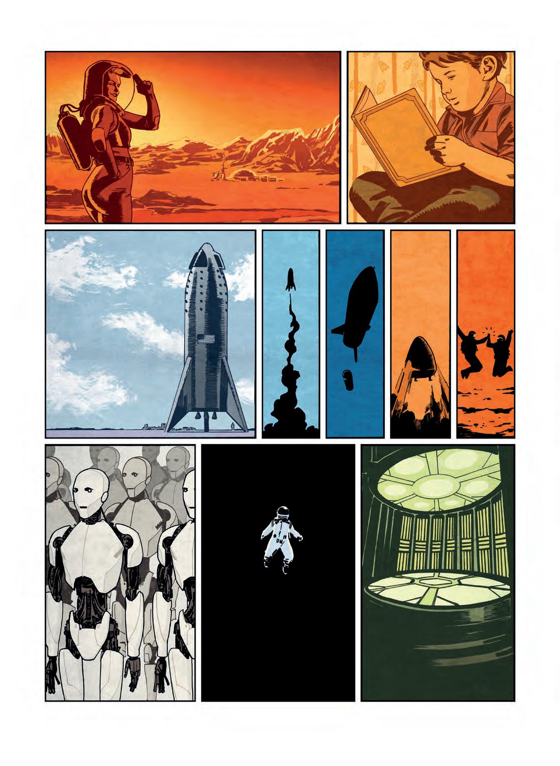 SCIENCE FICTION NÁM UMOŽŇUJE SNÍT. KE SLOVU SE DOSTÁVÁ NAŠE IMAGINACE. NAPŘÍKLAD POKUD JDE O DOBÝVÁNÍ VESMÍRU, KTERÉ SE PRO BUDOUCÍ GENERACE STÁVÁ JEDNOU Z HLAVNÍCH OBLASTÍ ZÁJMU. MARS, RUDÁ PLANETA, DRÁŽDIL PŘEDSTAVIVOST SPISOVATELŮ JIŽ OD GUSTAVA LE ROUGE PŘES IANA MCDONALDA A KIMA STANLEYHO ROBINSONA PO STANLEYHO G. WEINBAUMA A RAYE BRADBURYHO. ELON MUSK, ČTENÁŘ SCI-FI A ZAKLADATEL SPOLEČNOSTÍ TESLA MOTORS A SPACEX, MÁ BLÁZNIVÝ CÍL: ZALOŽIT NA MARSU LIDSKOU KOLONII. ČASTO SE ODKAZUJE NA AUTORY, KTEŘÍ JEJ OVLIVNILI. DOPORUČUJE ANARCHISTICKÝ ROMÁN MĚSÍC JE DRSNÁ MILENKA ● OD ROBERTA A. HEINLEINA A DÁLE ISAACA ASIMOVA, JEHOŽ SÉRIE NADACE ● JEJ HLUBOCE ZASÁHLA.