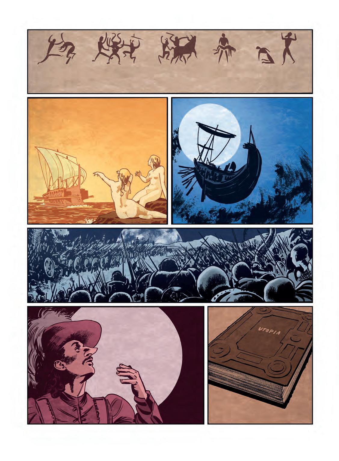 KRÁTCE PŘED CYRANEM, V ROCE 1516, PUBLIKOVAL THOMAS MORE, ANGLICKÝ KANOVNÍK, FILOZOF A POLITIK, ZAKLÁDAJÍCÍ SPIS S NÁZVEM UTOPIE ●. JEHO TEXT, STOJÍCÍ U SAMÉHO ZRODU UTOPICKÉHO MYŠLENÍ, JE ZALOŽEN NA ROVNOSTI MEZI LIDMI NA OSTROVĚ UTOPIA, CHRÁNĚNÉM PŘED NIČIVÝMI VLIVY OKOLNÍHO SVĚTA.
