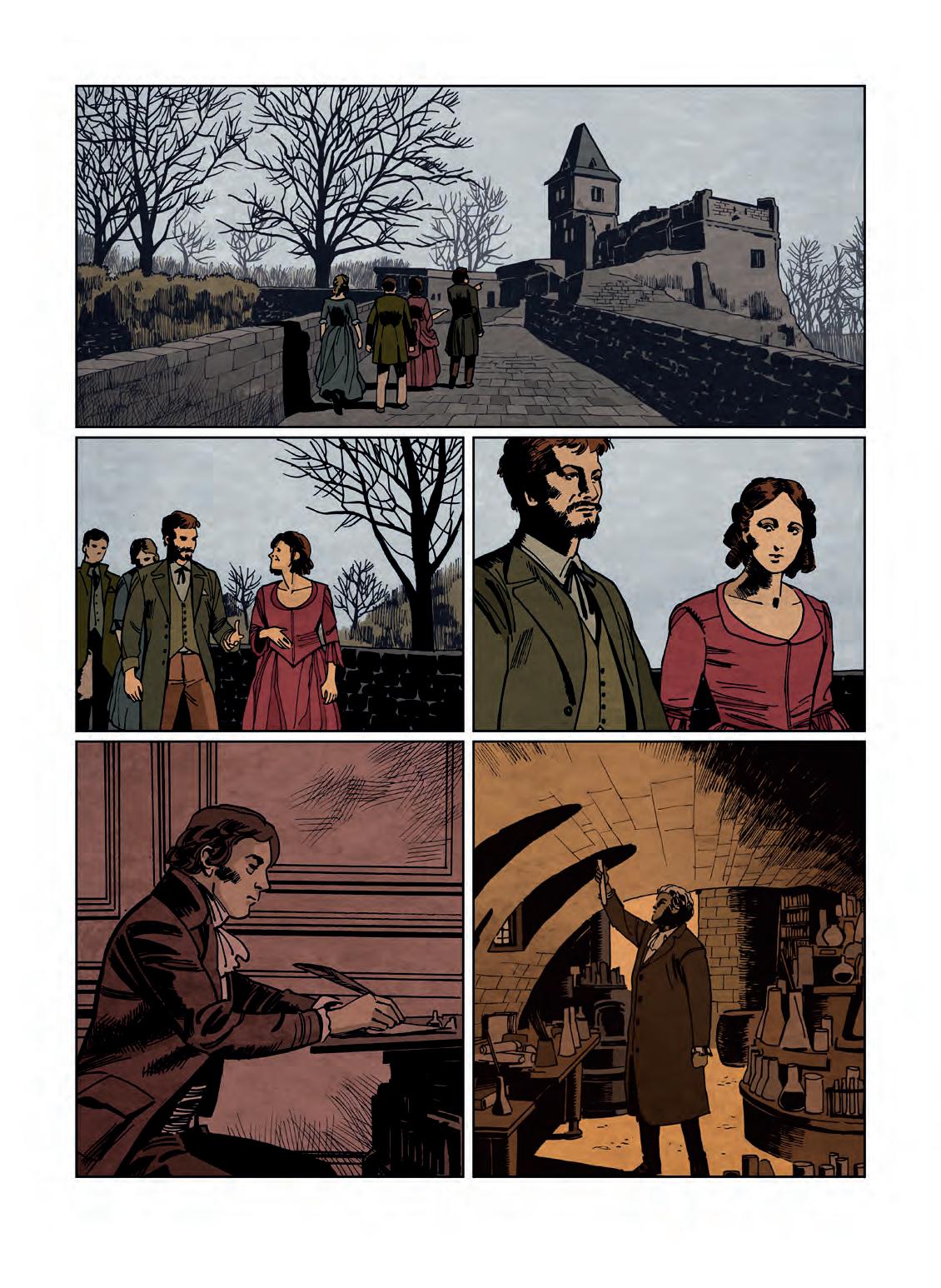 1814. MARY SHELLEYOVÁ MĚLA V DOPROVODU MARY JANE CLAIRMONTOVÉ, PŘEKLADATELKY GRIMMA DO ANGLIČTINY, A PERCYHO SHELLEYHO NAVŠTÍVIT HRAD FRANKENSTEIN V NĚMECKÉM MÜHLTALU.