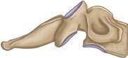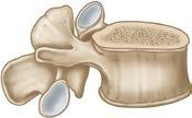 Obr. 2.11. Typy obratlů (všechny z bočního pohledu): a) krční obratel, b) hrudní obratel, c) bederní obratel.