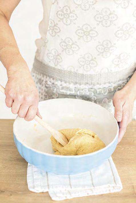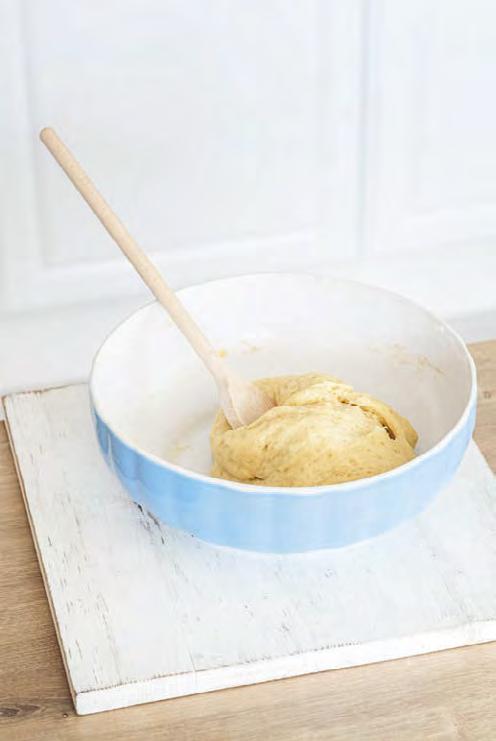 �o větší mísy prosejeme hladkou a polohrubou mouku, vmícháme špetku soli, zbylý cukr krupice a promícháme vařečkou. �řidáme kvásek, žloutek, změklé máslo, rum a pomocí vařečky nebo robotu vypracujeme těsto. Těsto by nemělo být �plně tuhé, ale nemělo by se ani lepit na prsty. �oprášíme hladkou moukou a přikryjeme utěr kou. Necháme kynout cca 1a půl hodiny na teplém místě. Mělo by zdvojnásobit svůj objem.