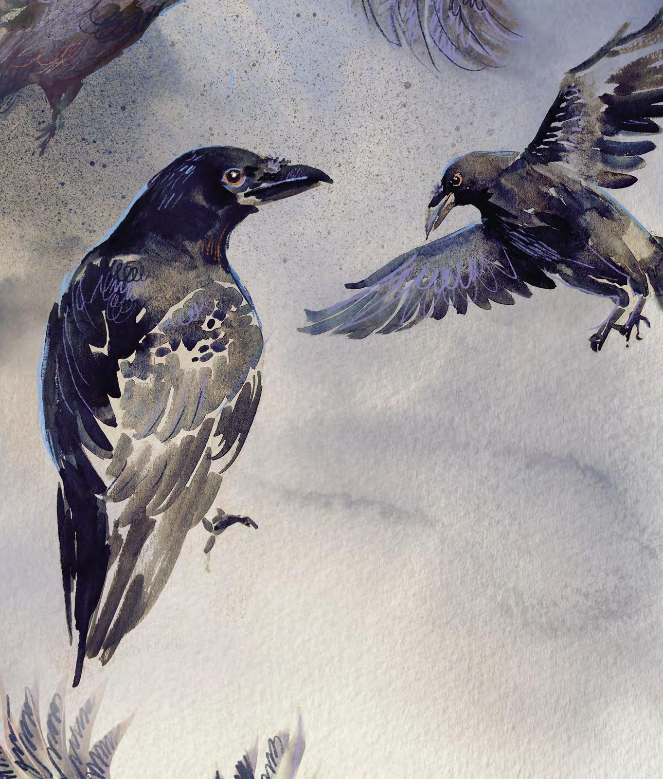 Nedolétla však daleko. Jakmile totiž zlostný skřítek vykřikl svá ošklivá slova, z jeho úst vystřelil černý havran. Vydal z hrdla skřehotavé krá a pustil se za holubičkou. Stačilo dvě a půl mávnutí černých křídel, když havran holubičku dostihl a chňapl po jejím křehkém tělíčku. Holubička pukla jako ta bublina. Jenže tentokrát už nestihla do světa lidí donést nový nápad.