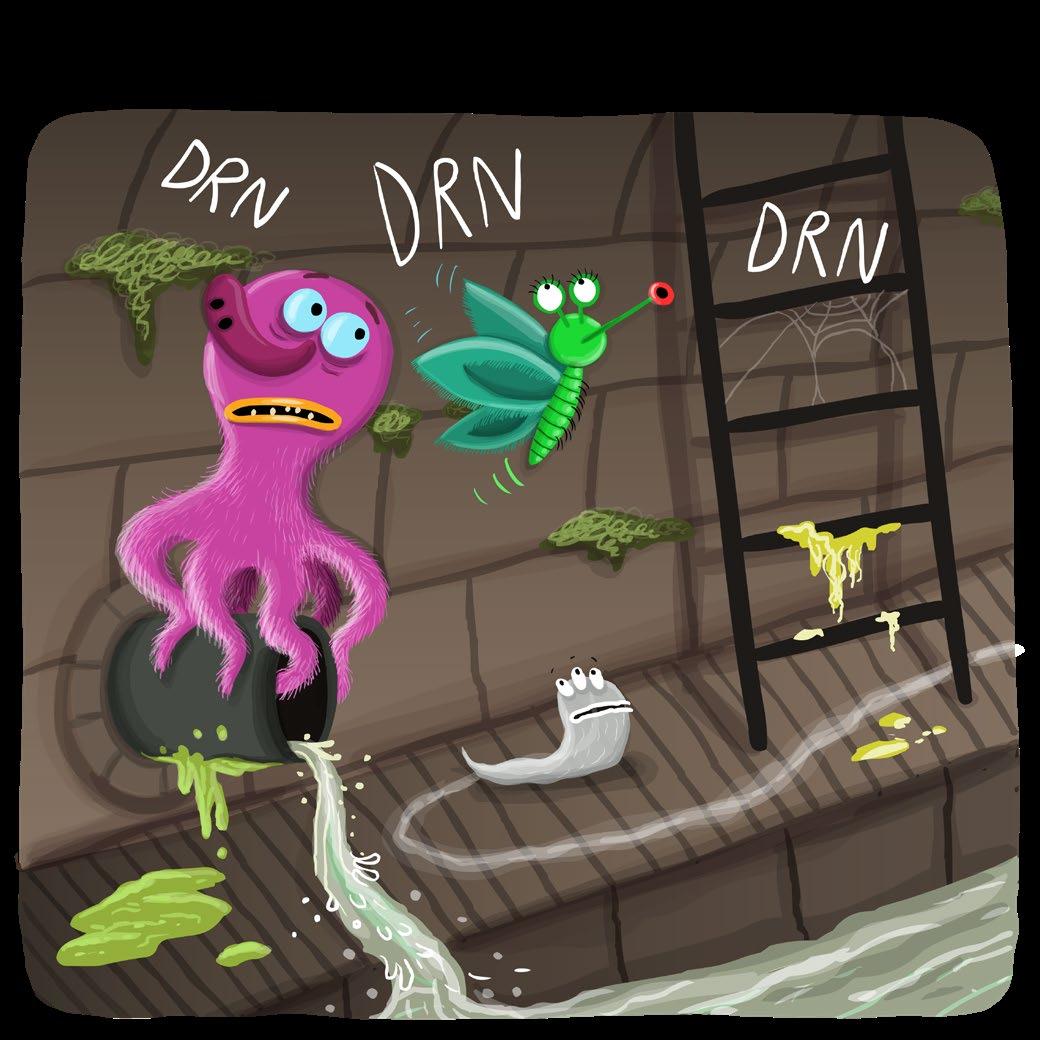 „Ten zvuk mě děsí!“ zapištěla Můra Vysávalka uvnitř kanálu a zatřepetala křídly.