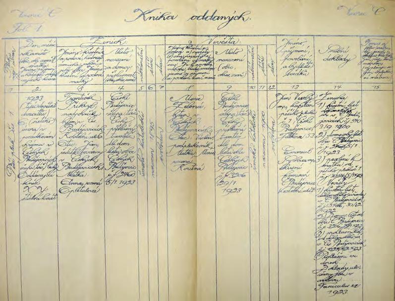 Dalším z dochovaných vzorů evidence, kterou vojenští duchovní vedli, byla „Kniha oddaných“, kde se v celkem patnácti bodech vedly přesné informace o osobních údajích jak svatebčanů, tak svědků, ale i útvaru, který příslušnou evidenci prováděl