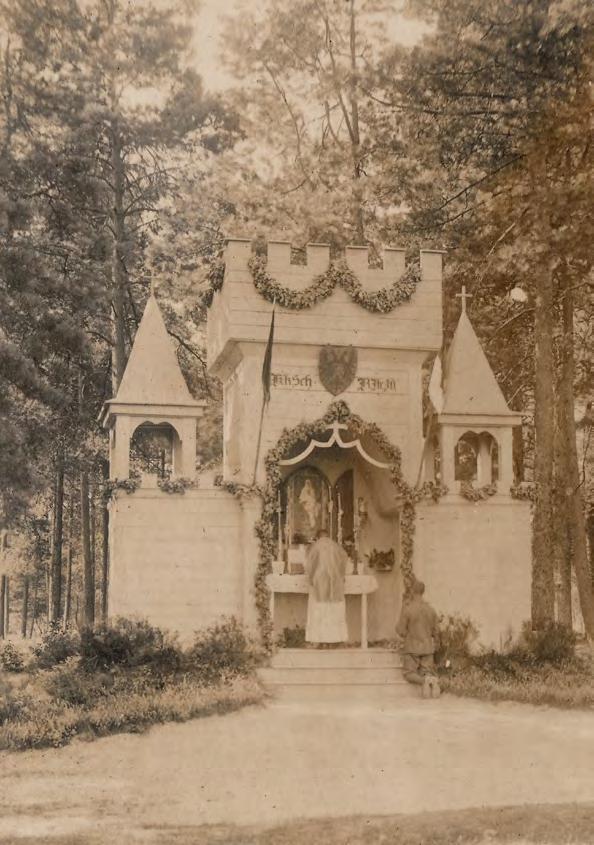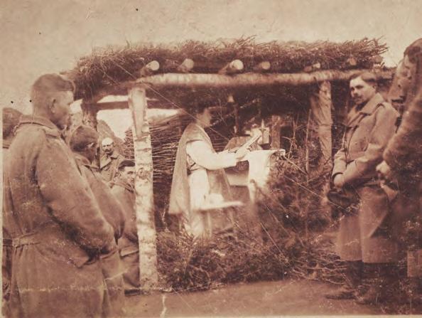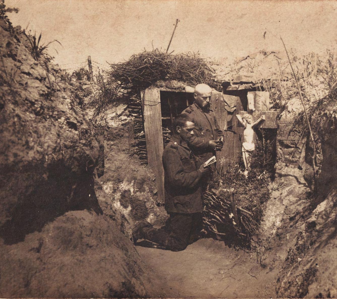 Mše svatá sloužená v zákopech. Pro polní podmínky byli vojenští kněží vybaveni přenosnými polními kaplemi, dřevěnými okovanými kufry, které obsahovaly vše potřebné pro mši, mimo jiné i dřevěnou desku se vsazeným oltářním kamenem s vloženým svatým ostatkem. Po rozložení se tak kufr změnil v plnohodnotný polní oltář