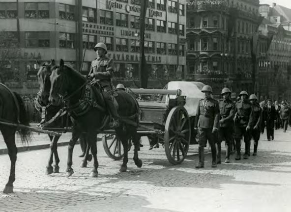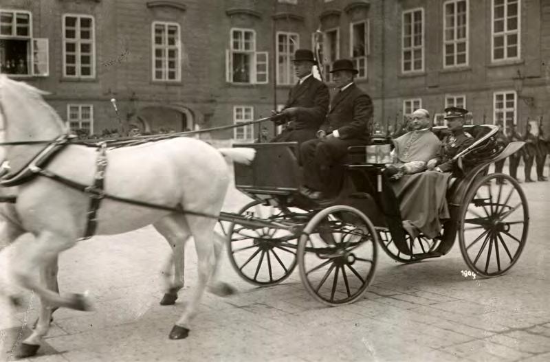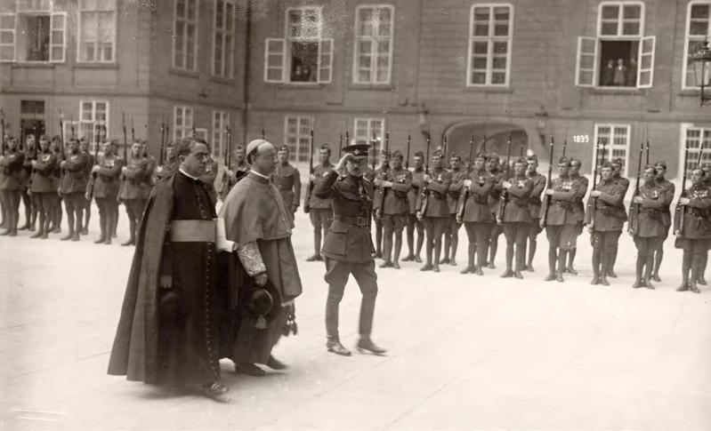 Apoštolský nuncius Francesco Marmaggi opouští Pražský hrad po ukončení nástupní audience v doprovodu plukovníka Viktora Hoppa, přiděleného důstojníka Vojenské kanceláře prezidenta republiky. Tento vojenský činitel ještě jako náčelník štábu pražského Vrchního velitelství stál fakticky u zrodu Hradní stráže. Na základě jím připravených rozkazů byl Pražský hrad poprvé zajištěn pravidelnou vojenskou jednotkou