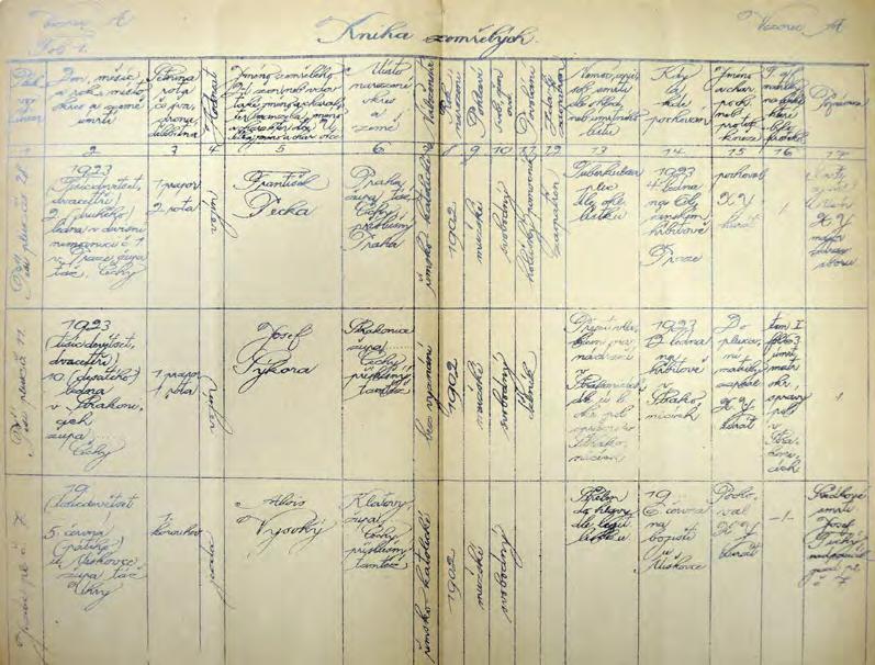 Duchovní správa procházela životem příslušníků armády ve všech směrech, tudíž byl zpracován i vzor knihy zemřelých, jež byla v celkem sedmnácti bodech rovněž velmi cenným zdrojem informací pro pozdější dohledávání údajů k životu dotyčných osob, které byly takto evidovány