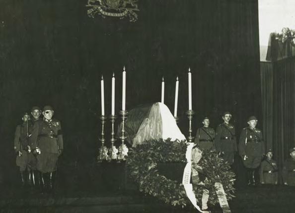 Od deváté hodiny ranní 18. září do osmé hodiny večerní 20. září 1937 se k Pražskému hradu vinul několikakilometrový zástup občanů ze všech koutů republiky. Bez ohledu na denní dobu a počasí lidé trpělivě čekali a pomalu procházeli smutečně vyzdobenou hradní bránou na I. nádvoří a odtud do černého sukna zahalené Sloupové síně. V čele tohoto vznosného prostoru, který právě z Masarykova pokynu vybudoval ve 20. letech slovinský architekt Josip Plečnik, před oponou s velkým státním znakem, stál katafalk, u něhož se pravidelně střídala šestičlenná čestná stráž. Jak dokládá foto, odpovídalo první složení této stráže významnosti okamžiku: Nalevo s páskou přes oko stojí armádní generál Jan Syrový, napravo náčelník Hlavního štábu branné moci armádní generál Ludvík Krejčí