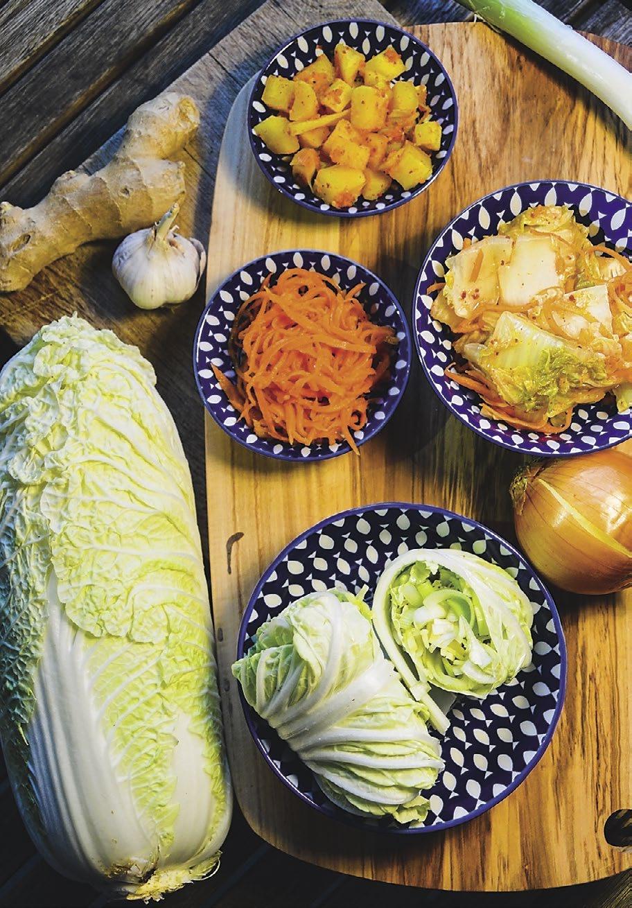 Leden se nese v duchu brambor, kořenové zeleniny, luštěnin a dlouhého, pomalého vaření. Na záhoně sbíráme růžičkovou kapustu, kadeřávek, pórek a polníček (když nám je srny nesežerou). Podle sezóny je možné mít i poměrně dost asijské listové zeleniny i salátu pak choi. Mezi moje oblíbené bojovníky proti lednovým nemocem patří cibule, česnek, zázvor, kurkuma a skořice. Chybějící vitamíny a pěknou nálož imunitě prospěšných látek dodávám kvašením a klíčením.
