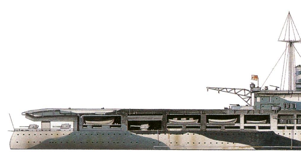To vedlo k „ploché palubě“, k lodi, jejíž všechny nástavby, dokonce i komíny, se tísnily na okraji průběžné paluby vybudované nad běžnou hlavní palubou, což dalo letadlové lodi její charakteristický vzhled. Toto řešení znesnadňovalo jak řízení lodě,