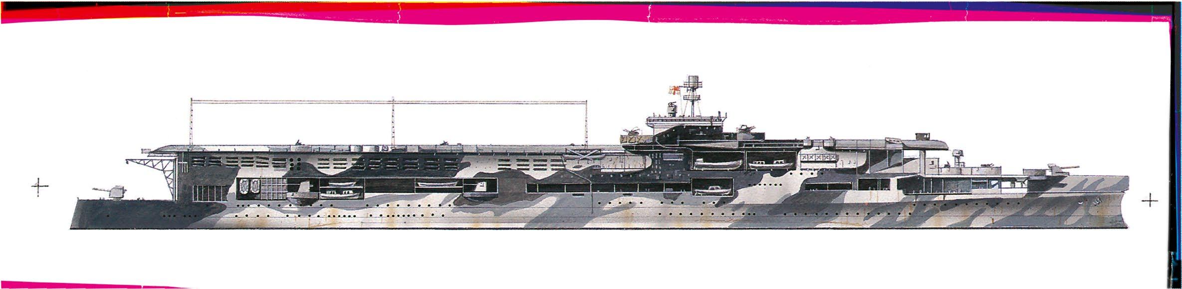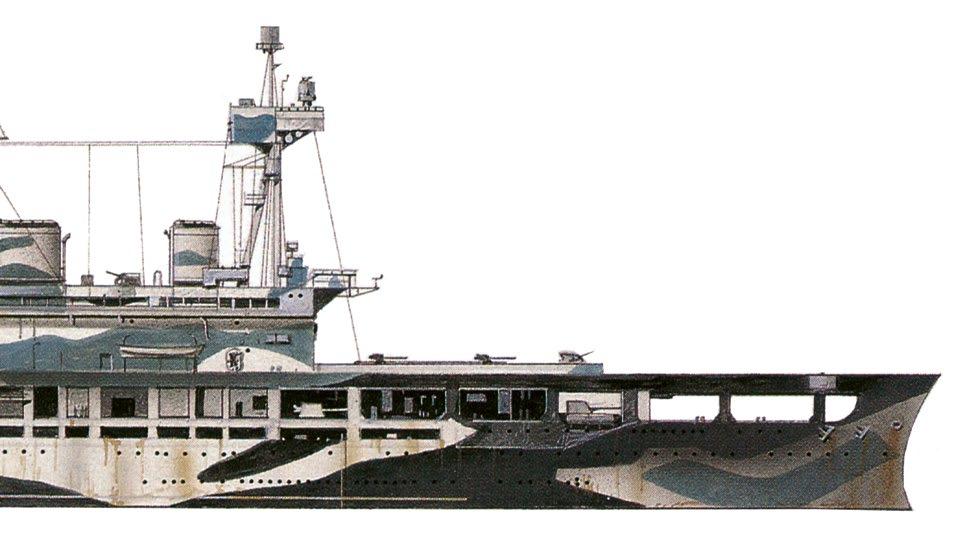 Kamufláž Bokorys ukazuje letadlovou loď Eagle v kamuflážním nátěru z roku 1942.