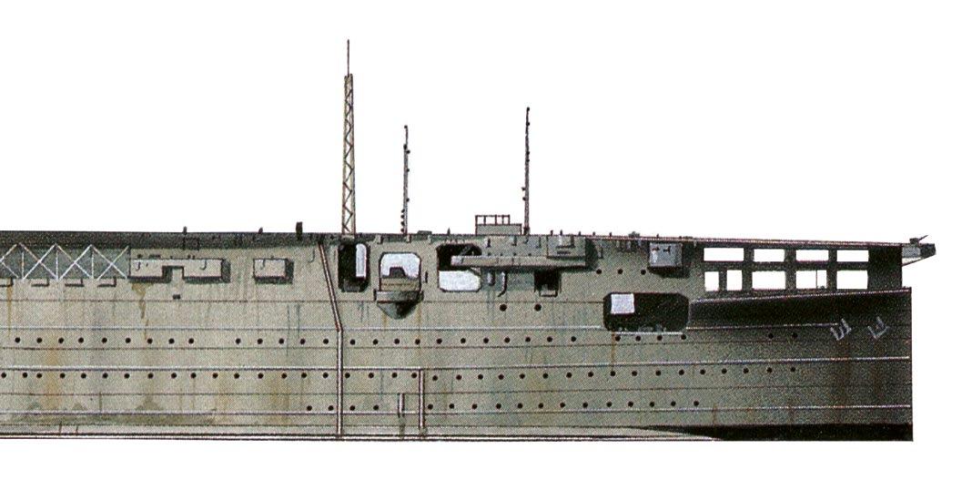 Loď disponovala dvěma letadlovými výtahy, jedním těsně před ostrovem, druhým na zádi. Trup bitevní