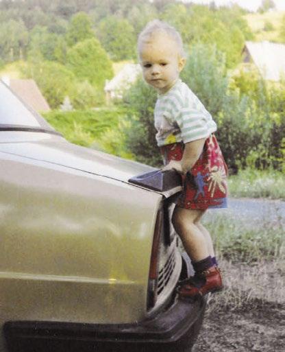 ▪ Malý Adam leze po škodovce v Adamově. (z rodinného archivu)