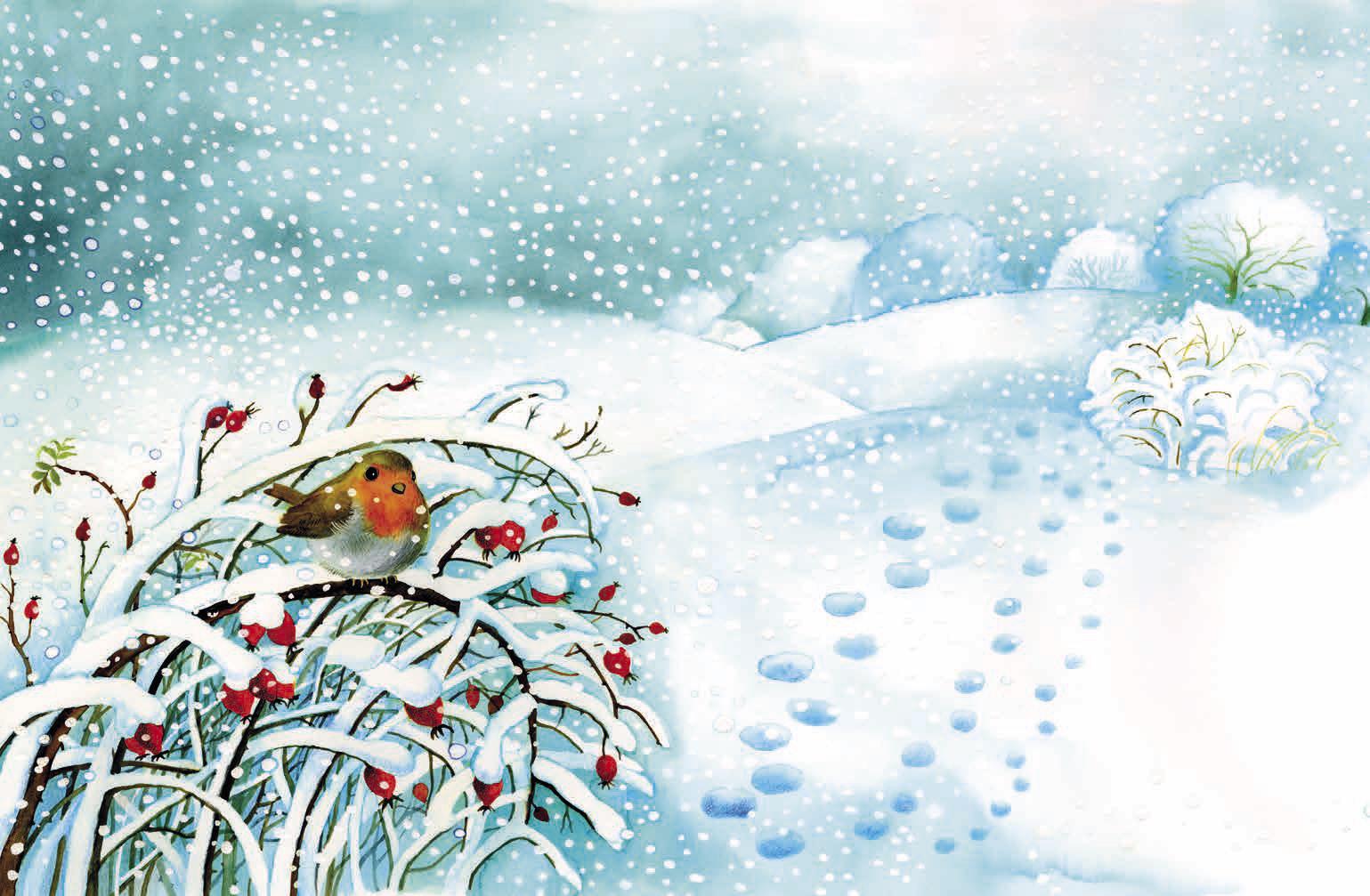 Jednou, uprostřed zimy, fičel ledový vítr a hnal sněhové vločky mezi stromy, že se jen tak tak stihly zachytit o větvičku a usednout na ni.